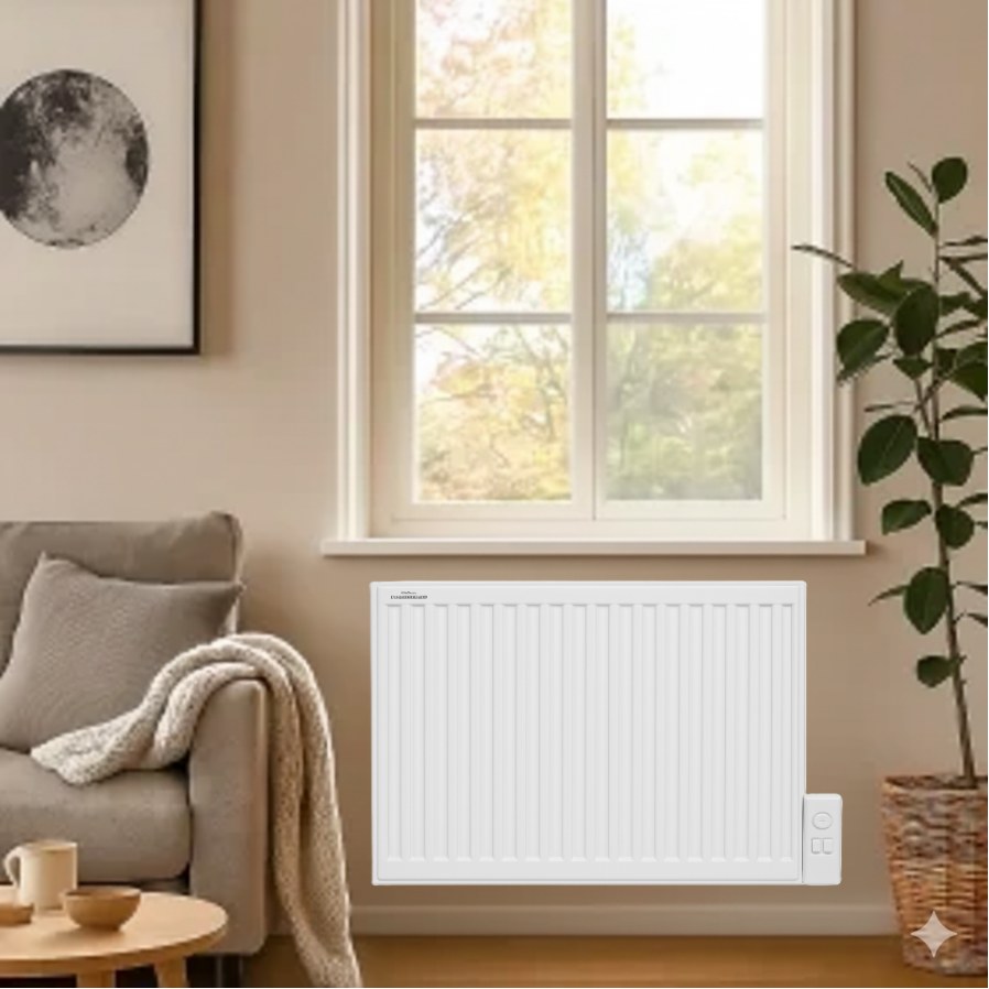 Elektrische kachel gevuld met hoowaardige olie en analoge thermostaat – veilig, stil en energiezuinig