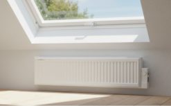 Slimme, oliegevulde elektrische radiator met IP21-behuizing, digitale thermostaat en stille werking. Geschikt voor badkamer, slaapkamer, kantoor of zolder. Energiezuinig, gasloos en voorzien van weekprogramma, eco-modus en open-raamdetectie.